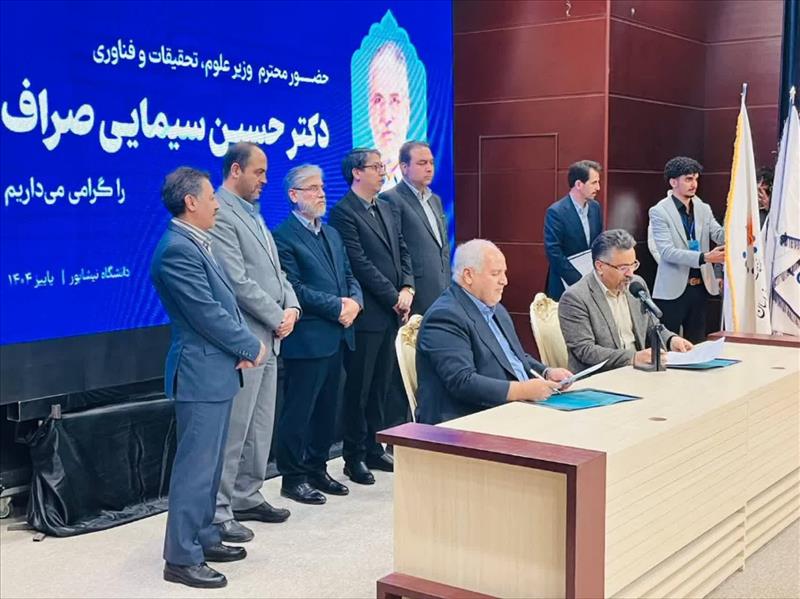 The agreement was signed during the provincial visit of Dr. Hossein Simaee Sarraf, Minister of Science, Research, and Technology, who attended the ceremony. Dr. Hassan Sadeghi Samerjani, President of Neyshabur University, and Dr. Javad Safaie, President of Khorasan Science and Technology Park, formalized the partnership.