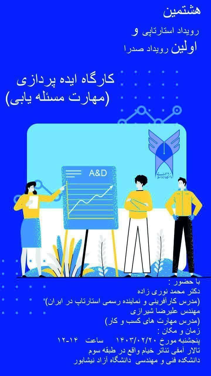 • برگزاری کارگاه ایده پردازی و مهارتهای مساله یابی توسط کارشناس مرکز رشد فناوری نیشابور